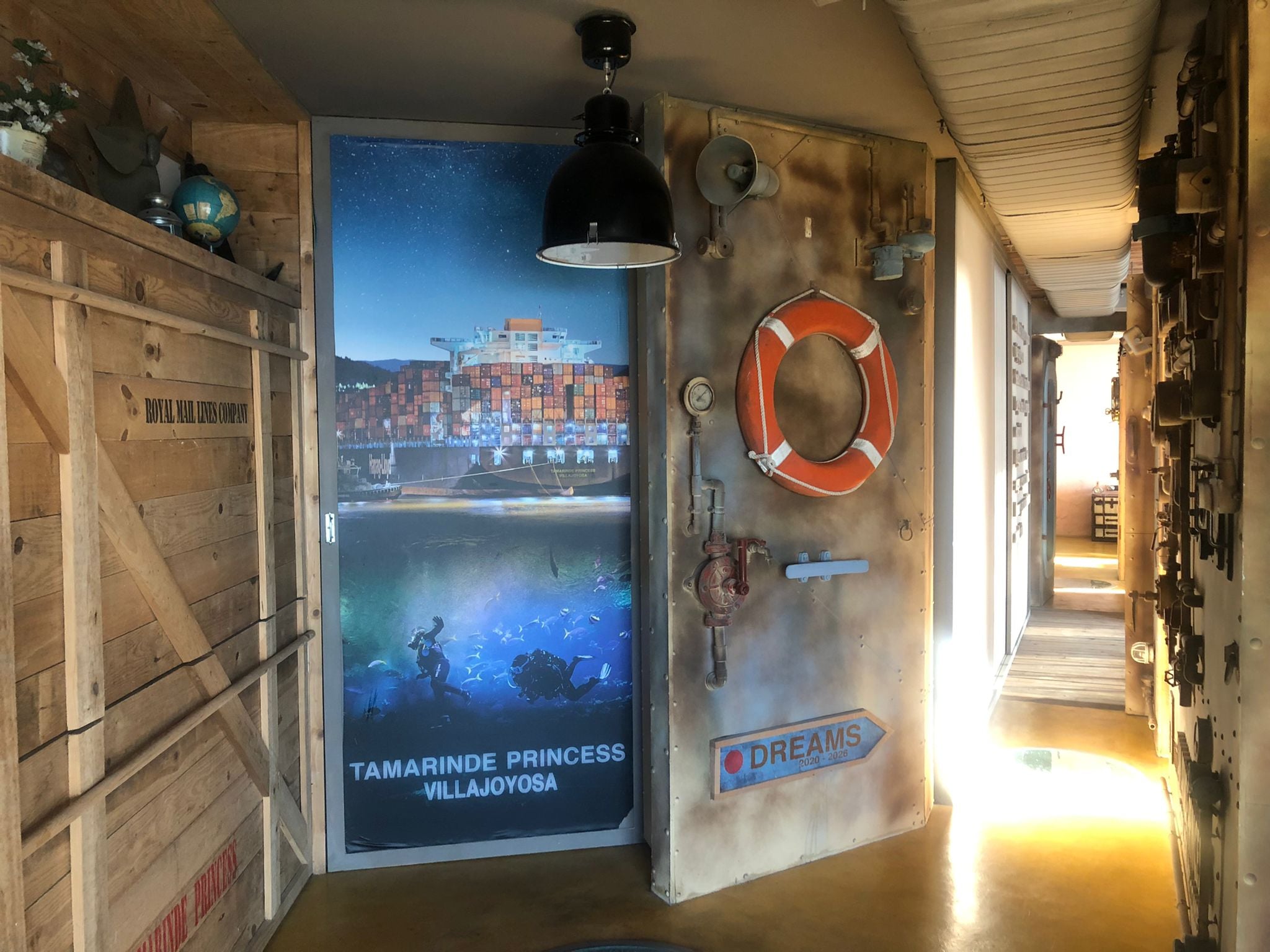 Detalles que le dan un toque distinguido a cualquier interior. Aunque en este caso la temática gira en torno al mar. Diseños en relieve para el cabecero de la cama, un fotomontaje de submarinistas para el armario o un diseño del mítico dibujo de la sirena y el submarinista para el jacuzzi.