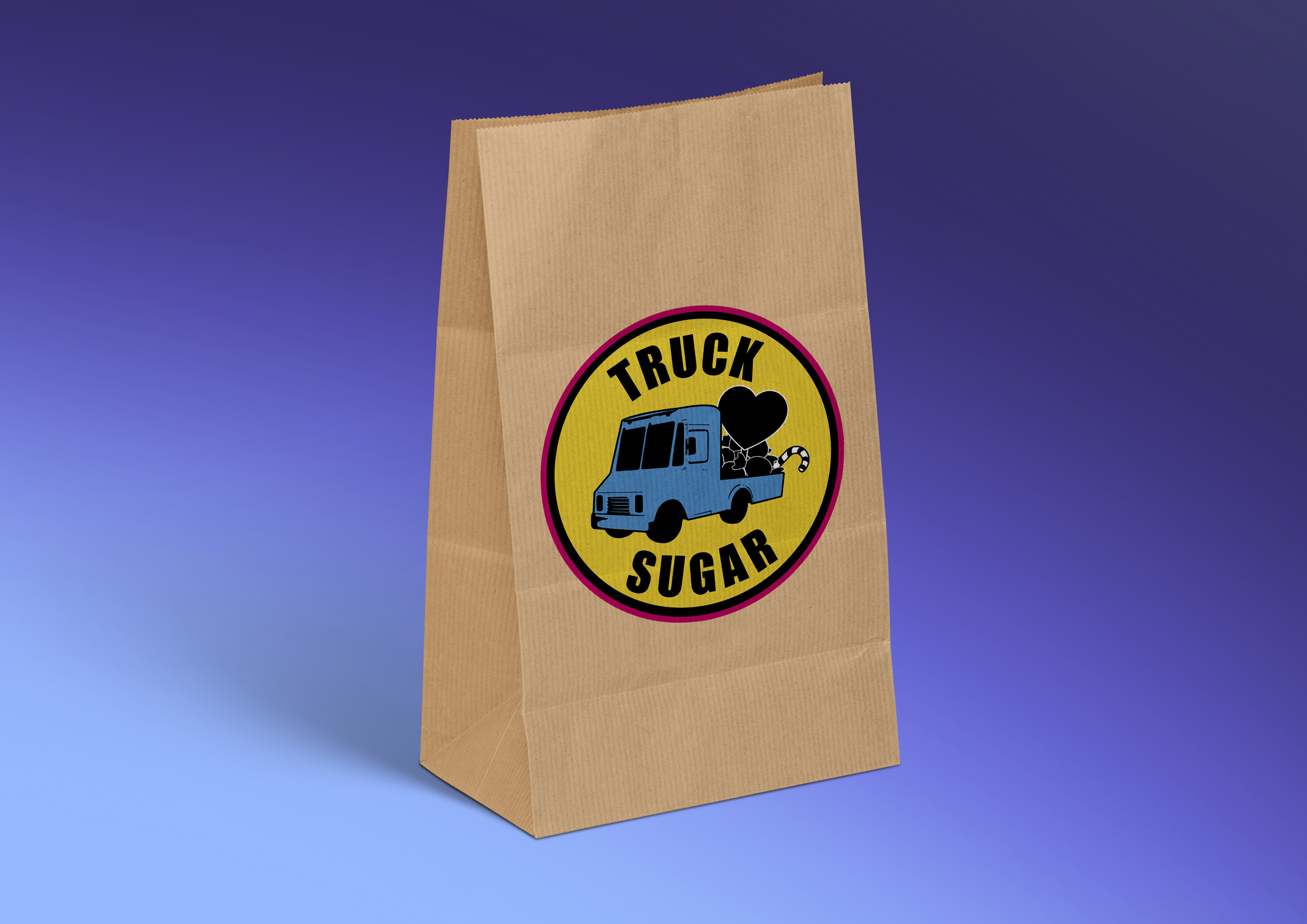 Teniendo en cuenta el briefing del cliente donde se quería destacar que contaría con food truck como elemento destacado, se optó por que fuera el elemento principal del logo, pero en vez de con la apariencia típica de este diseño de furgoneta, se dejaría abierta y cargada de chucherías para dejar claro que se trata de gominolas exclusivamente.